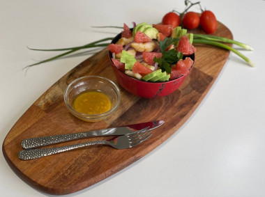 Полейте салат заправкой и подавайте к столу. Приятного аппетита!