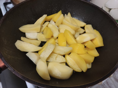 Обжарила картофельные дольки в разогретой сковороде на растительном масле.