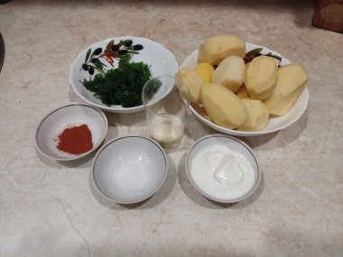 Как пожарить картошку в сметане? Для этого возьмите свежий картофель. Также вам потребуется качественная натуральная сметана. Она должна быть обязательно свежей. Жирность подойдет любая на ваш вкус. Так же понадобится очищенная вода. Растительное масло для жарки используйте рафинированное с низкой температурой дымления. Для приготовления блюда вам также пригодятся любимые специи и соль. Для подачи используйте свежую зелень.