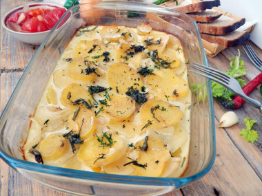 Картофель запеченный в сливочном соусе в духовке готовила впервые. Хотелось разбавить гарниры любимой картошечкой. Привлекла простота в приготовлении, да и все продукты были по рукой.
