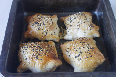 Помимо покупного, вы можете использовать и тесто собственного приготовления. Рецепт домашнего слоеного теста для этой выпечки вы можете выбрать в этом каталоге.