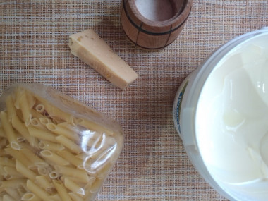 Как сделать макароны со сметаной и сыром? Подготовьте продукты. Макароны подойдут любой формы, у меня перья. С выбором и приготовлением макарон вам поможет статья, ссылка под шагами. Главное, чтобы они были изготовлены из муки твердых сортов — такие макароны более полезные и не развариваются. Сметана подойдет любой жирности. Выбирайте качественные и натуральные ингредиенты.
