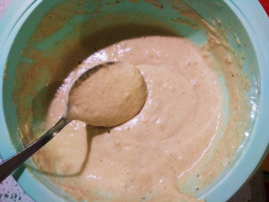Влейте в другую миску кефир — он должен быть чуть теплее комнатной температуры. Если вы не успели вынуть кефир заранее, то подогрейте его на водяной бане. Добавьте в эту миску банановое пюре и хорошо размешайте массу, чтобы ингредиенты разошлись и перемешались.