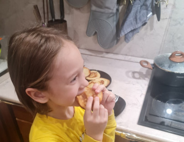 Маслом смазала сковороду при первой партии и последней немного совсем - на этой сковороде не особо нужно масло.