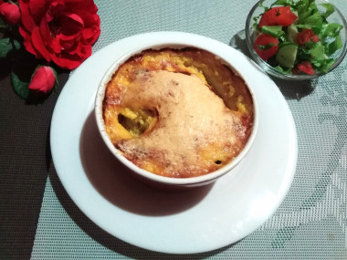 Затем наше блюдо вынимаем и посыпаем его сверху натертым сыром. Ставим назад а духовку и запекаем еще 20 минут.