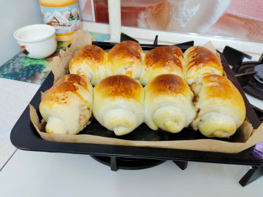 Заинтересовал рецепт этих японских булочек: сочетание заварного и дрожжевого теста. Но так как в моей семье не очень любят сладкую сдобу, испекла с картошкой! Это просто чудо! Горячие булочки разлетелись как горячие пирожки))) Это тесто теперь займет ведущее место в моей кулинарной книге! Спасибо огромное!