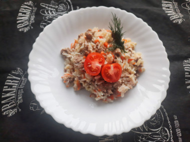 Интересное блюдо, надо будет попробовать приготовить. Рис можно приготовить в томатной пасте. Очень вкусно и мясо не нужно.