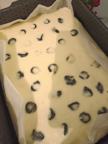Для запекания берите любую жаропрочную форму для выпечки. Дно и бока формы смажьте небольшим количеством растительного масла. Выложите в форму творожное тесто и разравняйте его. По всему тесту выложите ягоды сушеной вишни. Вместо вишен можно использовать изюм, курагу, малину и пр. Поставьте запеканку в духовку, разогретую до 170 градусов на 30 минут. Точное время и температуру запекания определяйте по своей духовке.