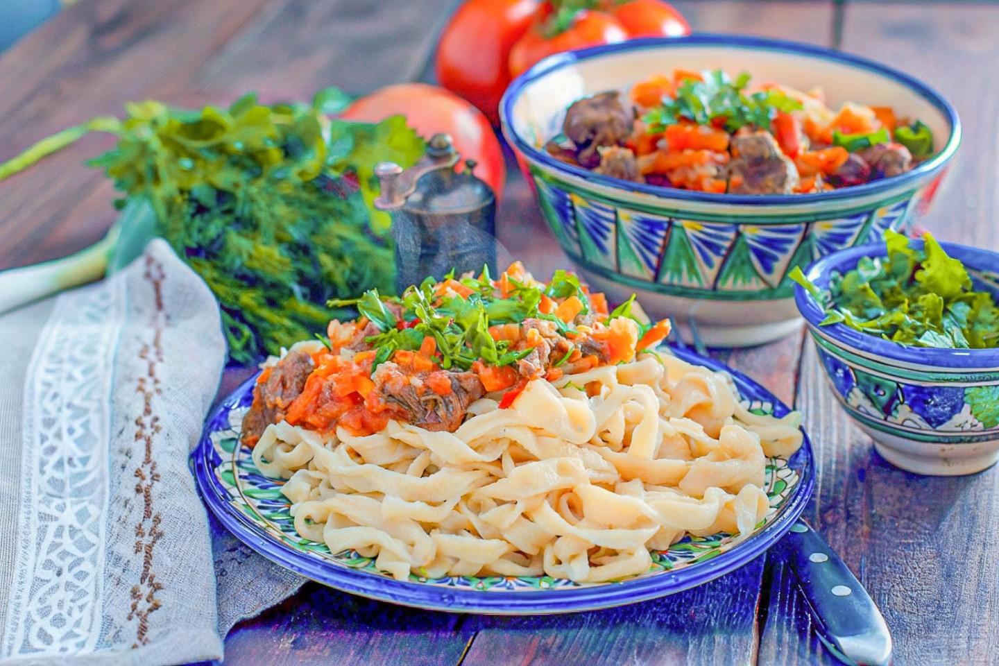 В Синьцзян-Уйгурском автономном районе Китая существует соревнование по приготовлению лапши для лагмана. Мастер за одну минуту должен вытянуть из одного куска теста 100 метров лапши! Рекорд — 256 метров. В нашем рецепте таких подвигов не требуется, но знайте: ваша лапша, нарезанная ножом, — это та же традиция, просто домашняя и уютная. Кстати, в Турции похожую лапшу называют «эриште» и подают с йогуртом и мятой.
