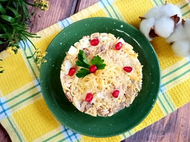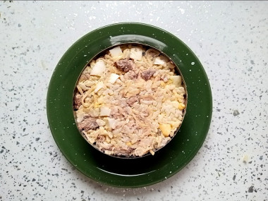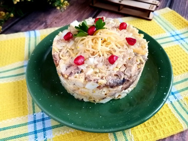 Смотри видеоСалат с горбушей консервированной рисом и яйцом