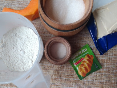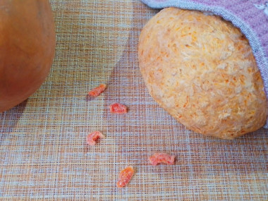 Отварила тыкву. Замесила тесто по рецепту. Оно хорошо поднялось. При этом имело структуру, которая липла к рукам, по этому работала с тестом смазав руки маслом подсолнечным.