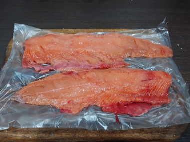 Горбушу предварительно разморозила, разрезала пополам и разделала на филе.
