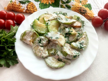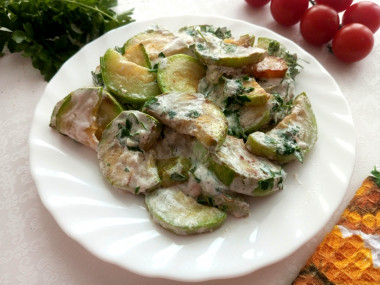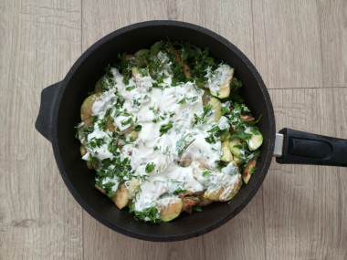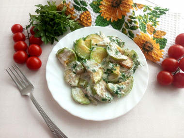 Кабачки настолько универсальный овощ, что блюд с ним существует очень много. Каждый раз, когда встречаешь что-то новенькое, кажется, что вкусу удивляться не будешь, но это не так. Кабачки в сметане с чесноком получились очень вкусные. У меня два молодых кабачка весом в 680 граммов. В качестве зелени я использовала петрушку. Порцию порезанных кабачков я разделила на два этапа жарки. Жарила на среднем огне до чуть золотистого цвета. Когда добавила сметану, а потом чеснок и петрушку, запах стоял потрясающий. Получилось, ну очень вкусно. А самое главное - готовятся кабачки по этому рецепту быстро.