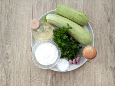 Как сделать кабачки, тушеные в сметане с чесноком на сковороде? Подготовьте продукты. Кабачки лучше взять молоденькие, с тонкой кожицей и без семян. Из зрелых тоже получится, надо будет только срезать кожуру и вырезать семена. Количество чеснока регулируйте по своему вкусу. Зелень подойдет любая, какую любите. Сметану заранее достаньте из холодильника, чтобы она стала комнатной температуры. Благодаря этому она не свернется во соусе во время приготовления.