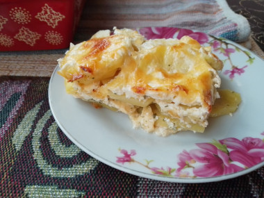 Готовила картошку в 3 слоя, нарезала тонкими ломтиками на тёрку, добавляла итальянские травки. Готовить начала как в рецепте, через 8 минут понимаю, что с моей эл. духовкой этот номер не пройдёт.. конвекции нет. Сыр таки активно начал плавиться ! Пришлось накрыть формой из фольги для барбекю, там есть дырочки, и так у меня готовилась картошечка 1 час и ещё 8 минут открытая. Зато получилась очень вкусная ! Может быть кому-то эта информация будет полезна. Спасибо за простой и вкусный рецепт картошки в сметане с сыром в духовке!
