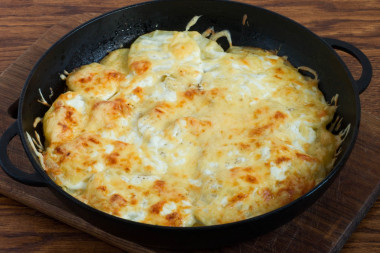 На гарнир сделала картошку в сметане с сыром в духовке. Делается она просто и легко.