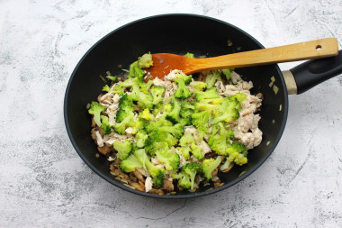 Песочную основу я готовила, четко следуя рецепту, а вот с начинкой я поэкспериментировала. Курицу я использовала отварную, количество грибов у меня было около 300 гр., луковицу я использовала целую и еще я добавила брокколи, которую предварительно бланшировала. То есть, моя начинка состояла из обжаренных с луком грибов, отварной курочки и бланшированной брокколи. Сказать, что это очень вкусно, не сказать ничего!!!