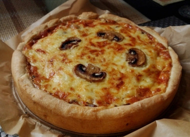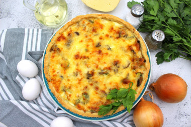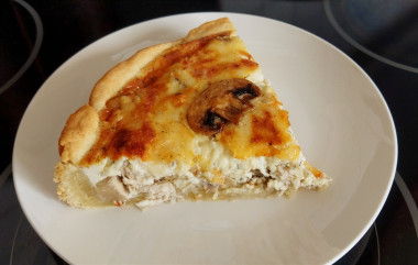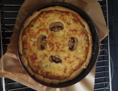 Такой пирог можно предложить гостям под бокал белого вина или побаловать семью воскресными посиделками с кофе или чаем. Аппетитная сырная корочка и манящий аромат выпечки с грибами обязательно понравится её дегустаторам.