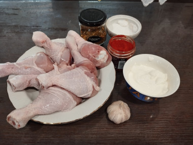 Как сделать куриные ножки в сметане в духовке? Подготовьте для этого все необходимые ингредиенты. Для запекания по этому рецепту можно использовать любые части курицы, но я буду запекать куриные голени.