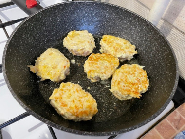 Блюдо достаточно сытное и к тому же экономное.Из специй у меня куркума, сушеный чеснок и соль. Я полностью обжаривала под крышкой по избежание сильной корочки, так как подавала котлетки и ребенку. Тем не менее получилось также очень вкусно. Я подала блюдо с макаронами, можно еще добавить овощной салат. Спасибо за напоминание