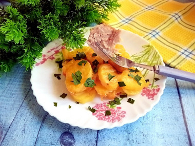 Картошки взяла в два раза больше, чтобы сделать два слоя: сверху и снизу. Люблю, когда мясной сок впитывается в нижний слой картофеля.