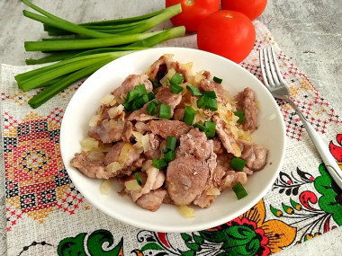 Вот и все! Свинина, жаренная с луком на сковороде, готова. Можете подрумянить ее еще, сняв крышку. Мясо получается сочным и ароматным.
