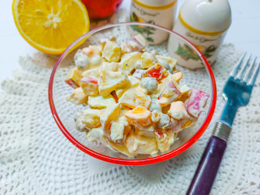 У салата очень приятный вкус, особенно понравилось сочетание кальмара и яблока.