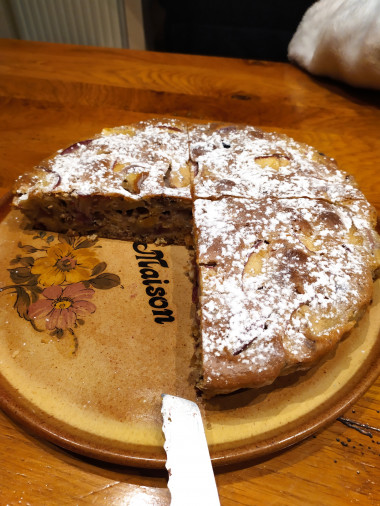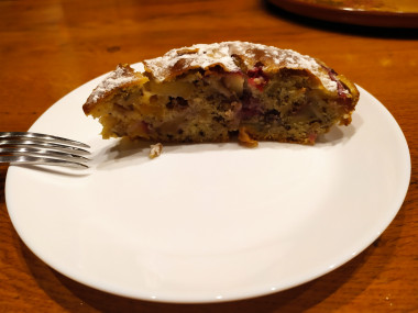 Я, кроме яблок, еще и ягод накидала, и шарлотка получилась очень вкусной! В разрезе не успела сфоткать, потому что домашние налетели на угощенье