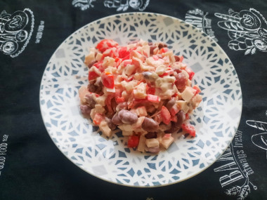 Согласна. Салат вкусный и довольно сытный. Смотрите еще такой вариант фасолевого салата с крабовыми палочками.
