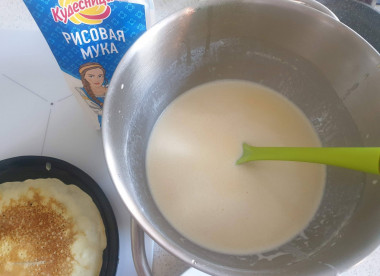 1. Тесто после замеса обязательно нужно оставить "отдохнуть" минут на 5-10. При замесе оно получается как самое жидкое блинное, но если ему дать немного постоять, консистенция изменится (рисовая мука немного разбухнет, впитает влагу).