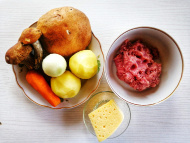 Грибы можно использовать любые лесные или шампиньоны. Грибы моем, мелко нарезаем ножом и обжариваем до готовности на растительном масле, оставшемся после овощной зажарки на сковороде.