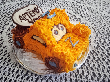 Прекрасный подарок на день рождение ребенку. Очень понравилась ваша идея и я решила повторить. Сделала торт машина для мальчика из крема. Думала, что будет сложно, а на самом деле всё оказалось очень просто. Да, конечно пришлось повозиться, но это того стоило. Приготовила тесто по описанию в рецепте. Молоко со сливочным маслом нагрела. Муку просеяла для воздушности, только вместо соды добавила разрыхлитель. Яйца с сахаром взбивала до пышности минут 10. Тесто получилось много. Пекла 3 коржа на деко размером 35 на 30 см на пергаменте. Остывшие коржи порезала на части машинки, как на фото, и пропитала сахарным сиропом. Только на основу машинки у меня пошло 1.5 коржа (вышло 4 слоя) и оставшиеся 1.5 коржа разделила на остальные части машинки. Кремом промазала все части машинки и собрала тортик на круглом деко диаметром 26 см. Цветными кремами украсила тортик, как на фото у автора. Ещё сделала шоколадку из белого шоколада, как у автора, и надпись черным шоколадом - мне понравилась такая идея) Торт вышел изумительный!