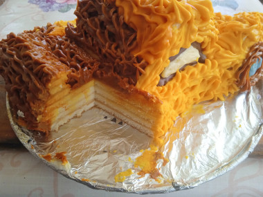 И вот фото тортика-машинки в разрезе. Идеально ровные коржи, одинакового размера. Бисквит нежный и мягкий, а крем восхитительный! Благодарю автора!