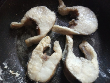 К муке добавьте немного соли, перемешайте. Запанируйте кусочки рыбы в муке. Удобно это делать в обычном полиэтиленовом пакете. Насыпьте муку в пакет, выложите в него кусочки рыбы и хорошо встряхните.