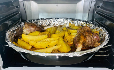 Через час выньте баранину из духовки, снимите фольгу и отправьте запекаться еще на 20-25 минут. Точное время зависит от вашей духовки. Узнать об особенностях работы духовок можно, прочитав отдельную статью, ссылка в конце рецепта. Баранина с картофелем готова. Приятного аппетита!