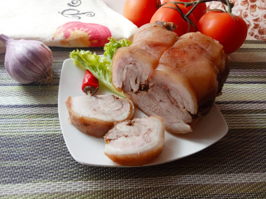Пикантный и такой ароматный, что сбегутся все соседи! Рулет из свиной рульки запекается в духовке в фольге, его не нужно предварительно отваривать, только мариновать. После охлаждения рулет получается стабильным и его можно аккуратно нарезать тонкими ломтиками. Такая закуска украсит любой стол.