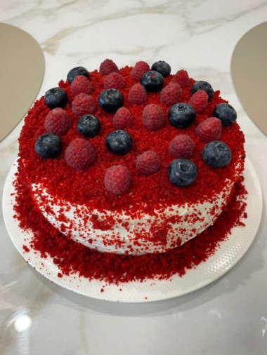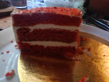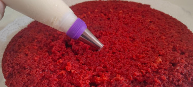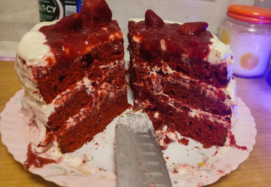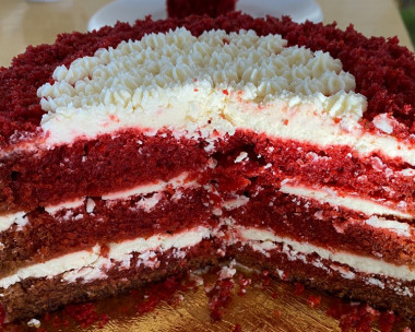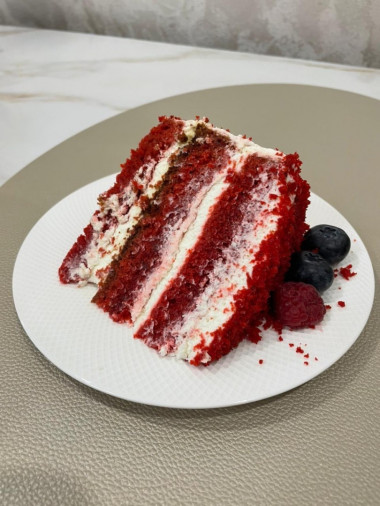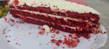 Это замечательный рецепт торта. Красный бархат очень вкусный и нежный. Сегодня я его и приготовила. Готовится очень легко если знать пропорции. Потому ,что если их не знать , тогда торт не получится. Если положить меньше масла, то бисквит не поднимется. Поэтому масла не надо жалеть. Краситель лучше брать гелевый , ведь при выпечке цвет не теряет, а краситель в таблетке может потерять цвет и торт не будет красным. Ещё особое внимание надо уделить сливкам , ведь если вы делаете сливочный крем они вам понадобятся. Лучше брать жирные сливки 33%, ведь если вы возьмёте меньше , то крем у вас будет жидким и торт развалится,поэтому следует учтить эти факторы и тогда торт будет самым вкусным.