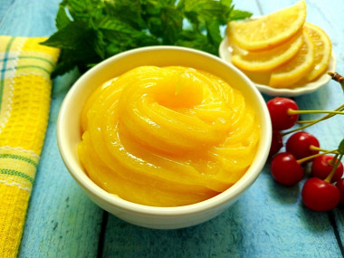 Если во время приготовления крема в него добавить вдвое меньше сливочного масла, чем того требует рецепт, то лимонный крем можно есть как самостоятельное блюдо, заменяя джем или варенье.