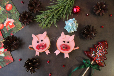 Разложить мелкие детали и кружочки копчёной колбасы, имитируя пятачки, ушки, копытца и хвосты "свинкам".
