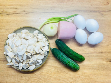 Как сделать салат Людмила с ветчиной и грибами? Готовить такой салат совсем несложно:
