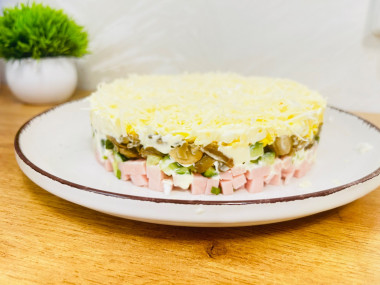 Нам очень понравился салат Людмила с ветчиной и грибами. Такой нежный, со свежим вкусом, гости оценили по достоинству. Большое спасибо!