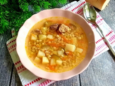 Рассольник со свининой и перловкой