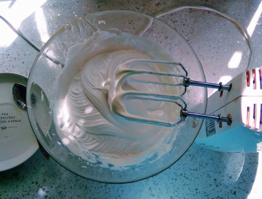 Важно уловить момент, когда пора остановить процесс взбивания белков. Хорошо взбитые белки должны в 4-5 раз вырасти в объеме и сохранять свою форму (образовывать устойчивые пики).