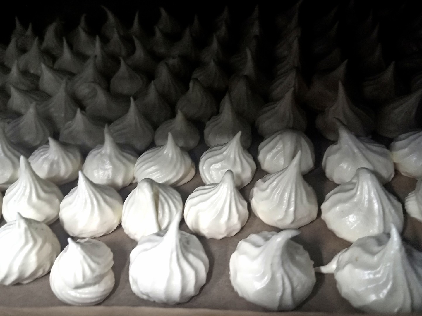 Если белки недостаточно хорошо взбиты, в них образуются крупные пузырьки воздуха, которые лопаются при замешивании теста, и готовые изделия получаются недостаточно воздушными. Излишне взбитые белки содержат мелкие пузырьки воздуха с тонкими стенками. В процессе выпекания такие пузырьки тоже лопаются и тесто опадает.