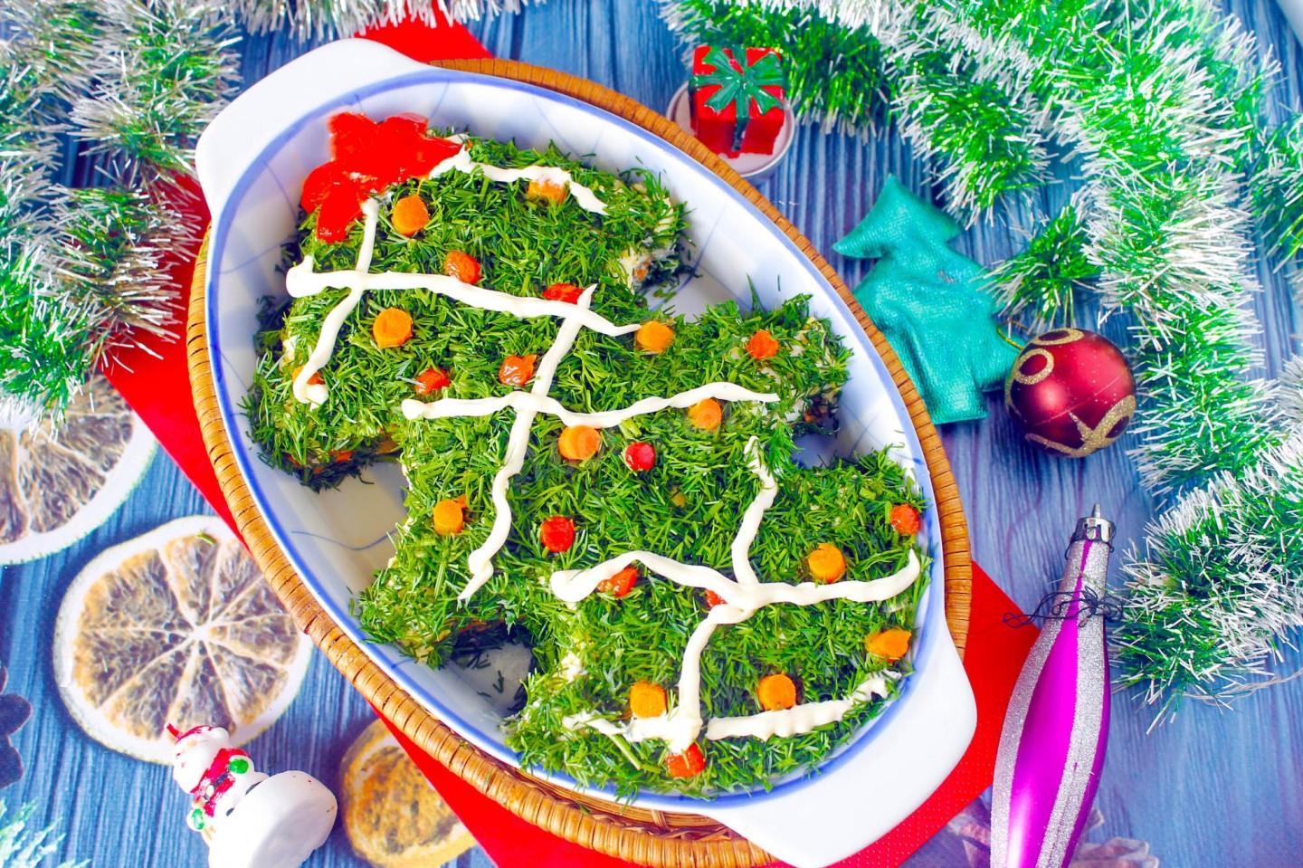 Форма ёлки в салатах позволяет идеально распределить соус, пропитывая каждый слой равномерно.