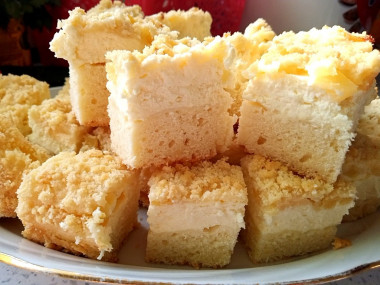 Пирог вышел просто шикарным! Он очень вкусный и ароматный! Основа похожа на сочный кекс, начинка нежная как крем. А сверху хрустящая посыпка. К тому же пирог получился большим, хватило на большую компанию. Рецепт рекомендую!