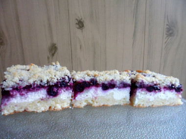 Это базовый рецепт творожного пирога, начинку можно менять в зависимости от сезона и по предпочтению. Очень вкусный он получается с клубникой или вишней. Если ягода или фрукты заморожены, сок надо слить. Ягодную начинку лучше пересыпать крахмалом /около 1ст.л./, в сильно кислую немного добавьте сахара, но сахара достаточно и в тесте и в творожном слое, поэтому пробуйте по вкусу.