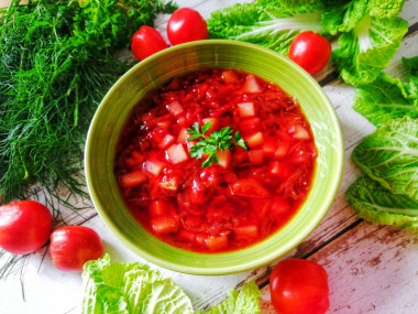Варила борщ без капусты, в последнее время готовлю именно так, добавляю побольше моркови, свеклы, картошки, чтобы борщ получился густым и наваристым.