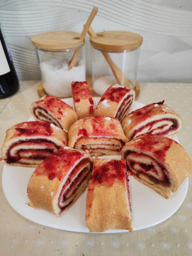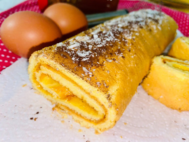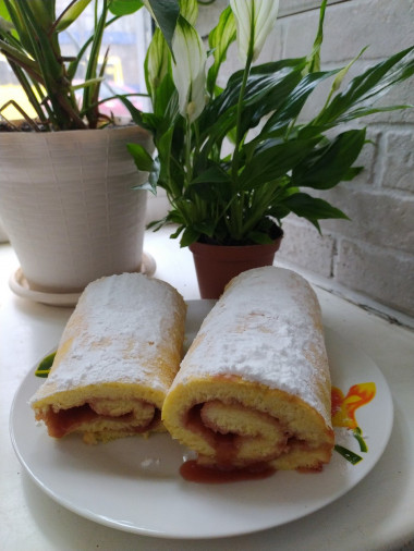 Приготовив этот рулет осталась в полном восторге! Простые ингредиенты, быстрота готовки и очень вкусная выпечка-это как раз то, что подходит для чаепития в кругу семьи! Очень хороший и удачный рецепт с которым справится каждый! На самом деле, при очень осторожном перемешивании на выходе получается пышный, нежный и пористый бисквит. При приготовлении рулета я добавила вместо абрикосового варенья клюквенный джем, что стало отличным дополнением к сладкому бисквиту. Спасибо за рецепт!