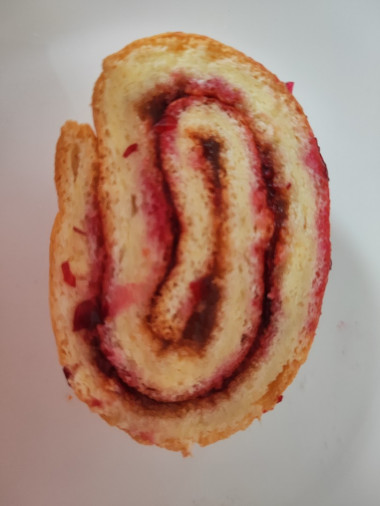 Ваша начинка из яблочного повидла и перетёртой с сахаром клюквы звучит просто восхитительно! 🍎🍒 Это идеальное сочетание сладости и лёгкой кислинки, которое делает рулет ещё более интересным и вкусным. 😋